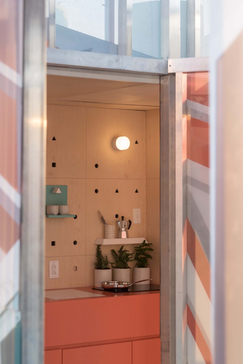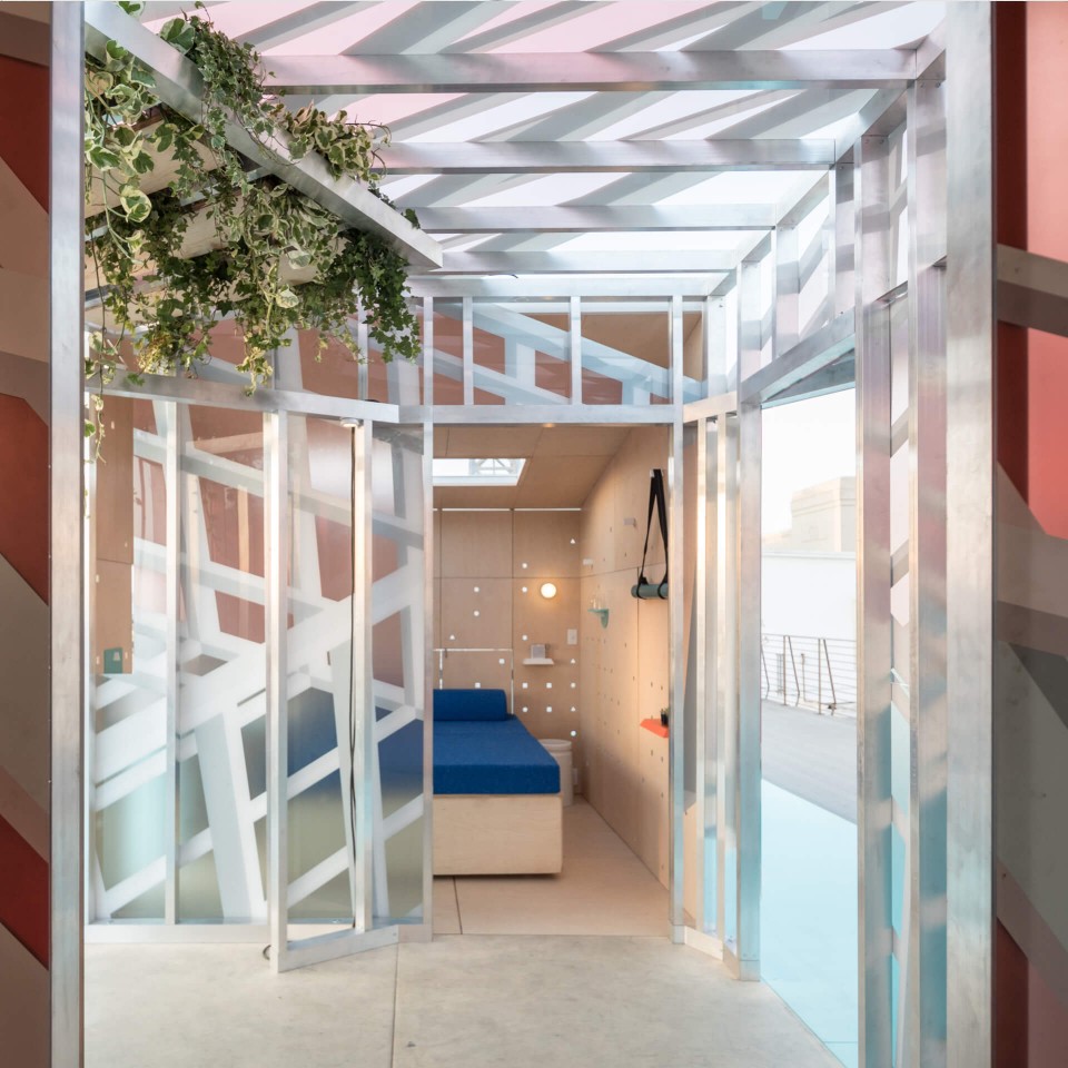 Aunque sea de una pequeña manera cada cabaña maximiza el espacio que provee, para crear un lugar para dos personas cómodo para vivir. Estas casa miniatura son flexibles y pueden ser reconfiguradas con una rotación, un pliegue, una resbaladilla o ciertos cambios. Como resultado, el carácter y la sensación de los espacios cambian de día y noche de acuerdo a las necesidades de sus habitantes. Durante el día, las cabañas urbanas se abren a la ciudad, invitando a la comunicación y fomentando la comunidad. Por la noche, por otro lado, pueden cerrarse, creando hogares flexibles, cómodos y bellamente diseñados.