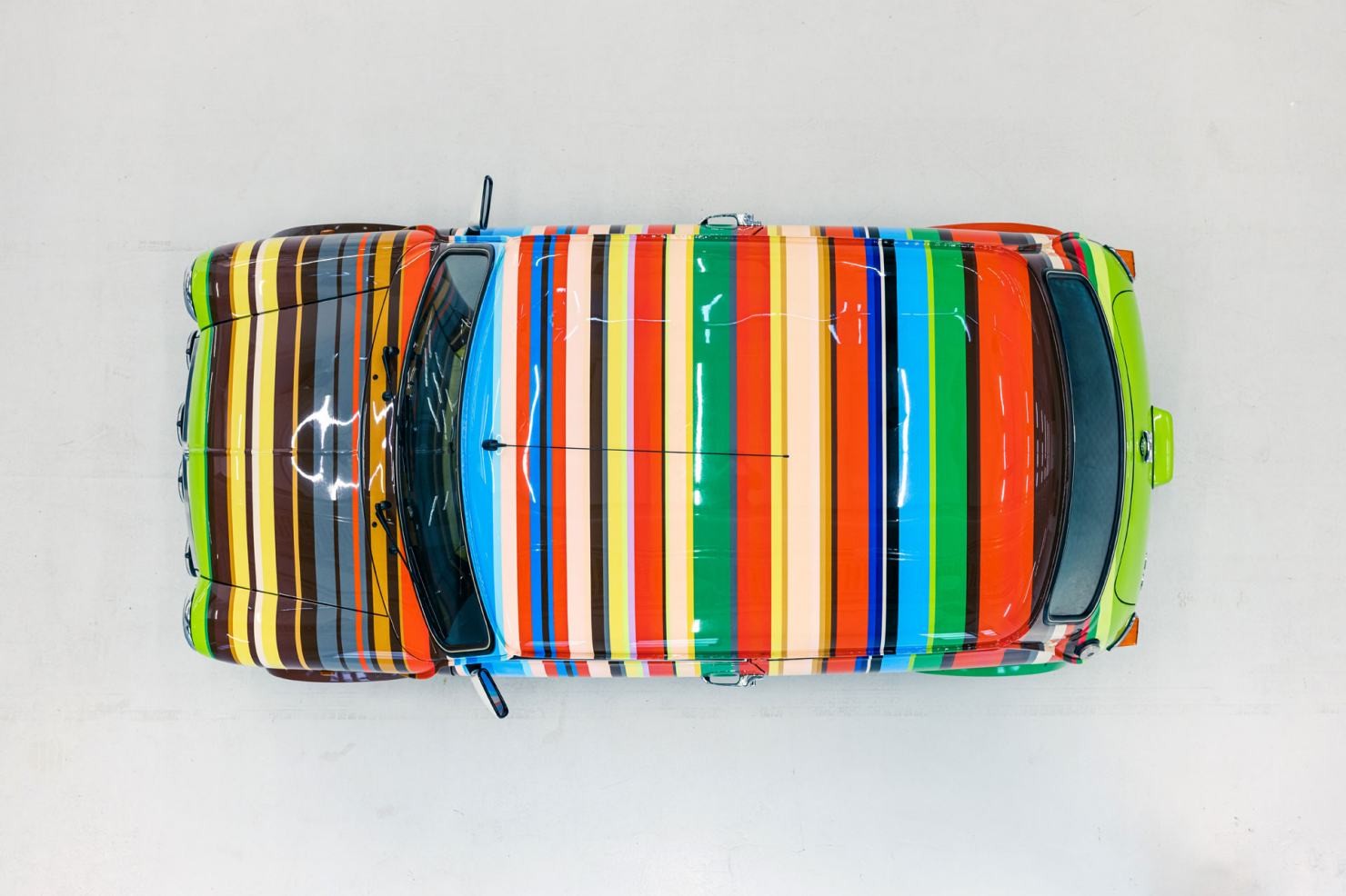 "EL AUTO HECHO A MEDIDA CUENTA CON 86 RAYAS EN 26 COLORES, MANTENIENDO UN DISEÑO ESTÉTICO ARMONIOSO."